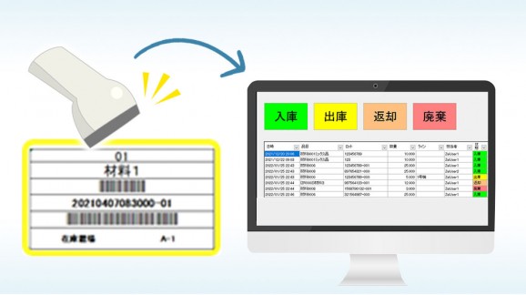 原材料1つ1つをバーコードラベルにて個別管理することで材料の入出庫を正確に記録し、先入/先出(FI/FO)や、材料管理業務の効率化をペーパーレスで実現します。