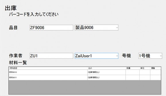 データーベースに基づき製品に紐付いた材料を指示するため、類似品目の材料などの誤出庫も心配する必要がありません。
