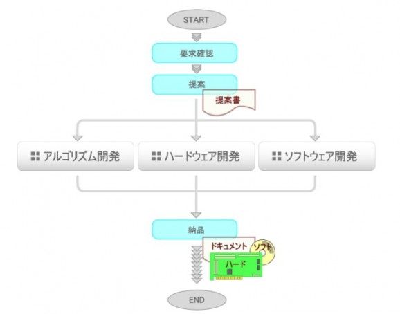 受託範囲としては『ハードウェア開発』『ソフトウェア開発』『アルゴリズム開発』を中心に、『画像処理コンサルタント業務』も行っております。